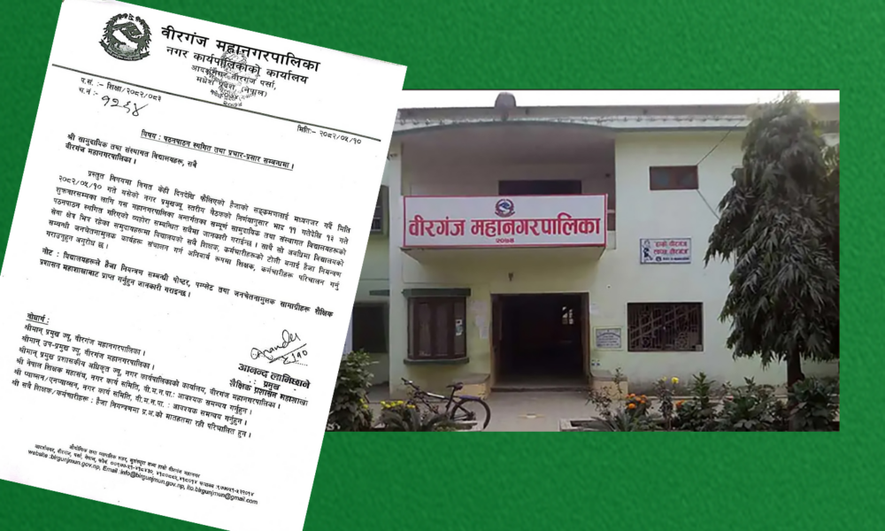 वीरगंज । वीरगंज महानगरपालिकाले थप तीन दिनका लागि विद्यालयहरू बन्द गरेको छ । वीरगंजमा गत शुक्रबारदेखि झाडापखाला र हैजाको संक्रमण…
