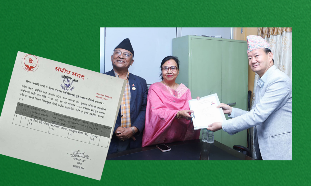 काठमाडौं । राज्य व्यवस्था तथा शासन समितिको सभापतिमा नेपाली कांग्रेसकी सांसद ईश्वरी न्यौपानेको मात्र मनोनयन दर्ता भएको छ । संघीय संसद सचिवालयले आज दिउसो…