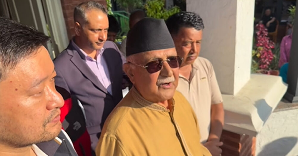 भक्तपुरको गुण्डुस्थित निवासमा नेता-कार्यकर्तालाई सम्बोधन गर्दै अध्यक्ष ओलीले सिंहदरवार जलाउँछु भन्नेहरूले नै जलाएको आरोप लगाए।