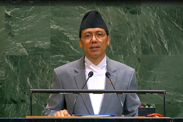 संयुक्तराज्य अमेरिकाको न्यूयोर्कमा जारी संयुक्त राष्ट्रसङ्घ महासभाको ८०औँ अधिवेशनलाई सोमबार नेपालका तर्फबाट सम्बोधन गर्दै स्थायी प्रतिनिधि थापाले भने, “हाम्रो अघि बढ्ने एक मात्र सम्भावित बाटो भनेकै शान्ति, लोकतन्त्र र समावेशी विकासको बाटो हो ।”