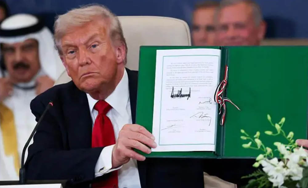 काठमाडौँ । अमेरिकी राष्ट्रपति डोनाल्ड ट्रम्प र इजिप्ट, कतार र टर्कीका नेताहरूले गाजामा शान्ति पुनर्स्थापना गर्ने घोषणापत्रमा हस्ताक्षर गरेका छन् ।