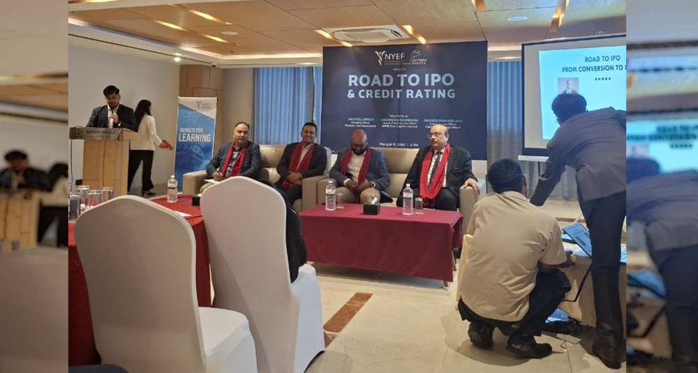गत मंसिर ५ गते Neplease Young Entrepeneurs Forum(NYEF) को आयोजनामा उक्त कार्यक्रम सम्पन्न भएको हो । उद्यमी व्यवसायीहरूलाई सेयर निष्कासन (आईपीओ) प्रक्रिया तथा क्रेडिट रेटिङबारे मार्गदर्शन दिने उद्देश्यका साथै सर्वसाधारणहरूमा वित्तीय साक्षरता अभिवृद्धि गने उद्देश्यका साथ उक्त कार्यक्रम आयोजना गरिएको थियो ।