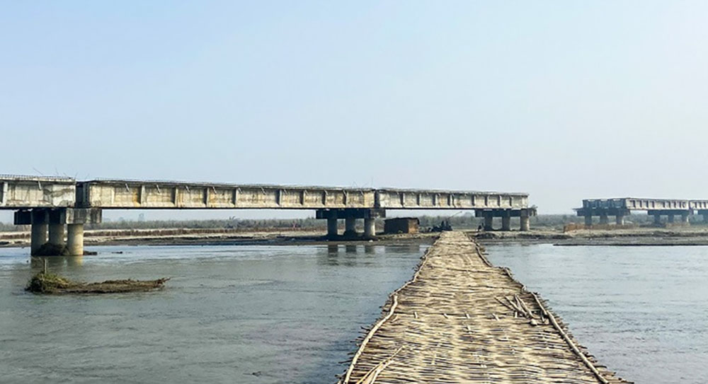 पुलका १९ स्पानमध्ये ८ वटा सकिएको छ भने बाँकी ११ मध्ये २ वटाको बिमसम्म (गर्डर) हालिएको छ । ६ वटाको जग हालिएको छ भने ३ वटाको जग हाल्न बाँकी छ ।
