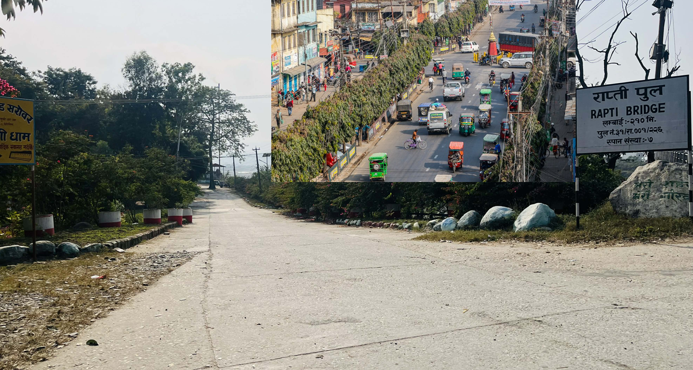 यस्तै, पूर्वतर्फ जाने सवारीले राप्ती पुल-त्रिवेणी-रातोमाटे मार्ग प्रयोग गर्नेछ भने पश्चिमतर्फ चितवन वा काठमाडौँतर्फ जाने सवारी पुनः रातोमाटे-राप्ती पुल हुँदै नै सञ्चालन गरिनेछ।
