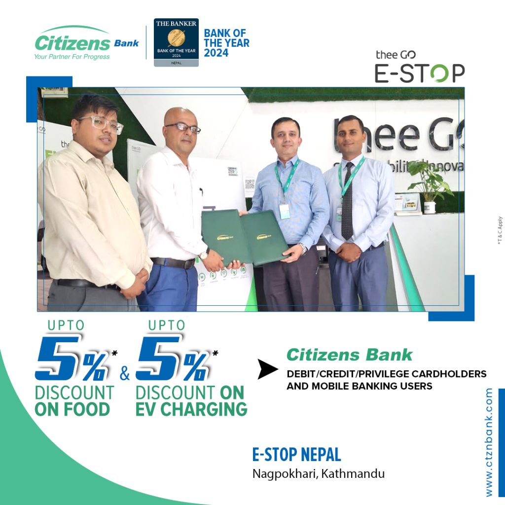 अब बैंकका कार्ड र मोबाइल बैंकिङ प्रयोगकर्ताले ई-स्पोटका सबै शाखामा इभी चार्जिङ र फुडमा ५/५ प्रतिशत छुट पाउनेछन्। बैंकले यस सहकार्यले ग्राहकलाई डिजिटल कारोबारतर्फ प्रोत्साहन गर्ने विश्वास व्यक्त गरेको छ।