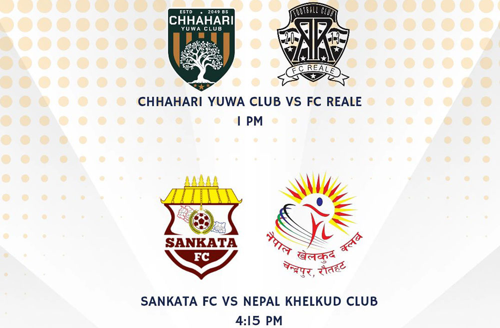 आज पहिलो दिन एफसी रियल र छहारी युवा क्लब तथा सङ्कटा एफसी र नेपाल खेलकुद क्लबका बिचमा खेल हुने एन्फाले जानकारी दिएको छ ।