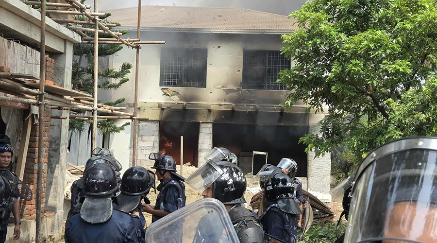 प्रदर्शनकारीहरूले परराष्ट्रमन्त्री आरजुको घरमा आगजनी गरेका हुन् ।