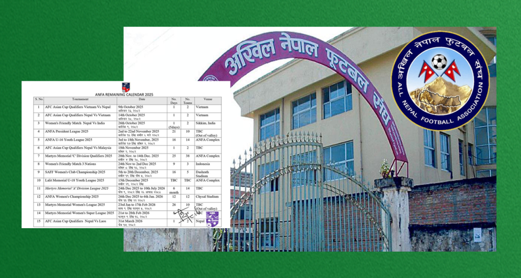 काठमाडौं । अखिल नेपाल फुटबल संघ (एन्फा) ले २०८२ को बाँकी क्यालेन्डर सार्वजनिक गरेको छ । जसमा हाल सर्वाधिक चर्चामा रहेको ए डिभिजन लिग पुष ९ गतेदेखि असार २६ गतेसम्म हुने उल्लेख गरिएको छ ।