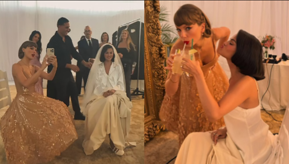 सेलेनाले इन्स्टाग्राममा टेलर स्विफ्टसँगको तस्बिरहरू र भिडियो सेयर गरेकी छिन्, जसमा उनको सबैभन्दा मिल्ने साथी टेलर स्विफ्टले उनलाई उनको विवाहको दिनको लागि तयार भइरहेको हेरिरहेको देखाइएको छ । टेलरको आँखामा चमक र उनको अनुहारमा मुस्कानले स्पष्ट रूपमा देखाउँछ, उनी आफ्नो साथीको विशेष दिनको बारेमा कति भावुक थिइन् ।