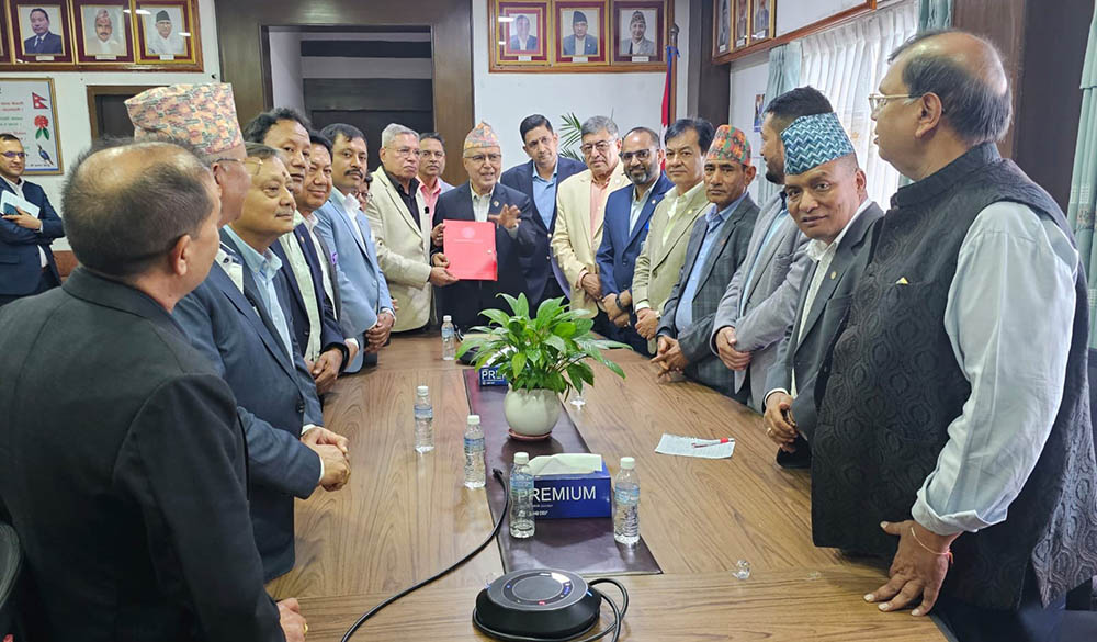 अध्यक्ष कमलेश कुमार अग्रवाल नेतृत्वको चेम्बर पदाधिकारी र कार्यसमिति टोलीले सिंहदरवारमा अर्थमन्त्री खनालसंग भेटवार्ता गर्दै वर्तमान परिस्थितीमा औद्योगिक तथा व्यवसायिक सुरक्षाको प्रत्याभूतिका साथै लगानीमैत्री वातावरण निर्माण गर्न आग्रह गरेको हो ।