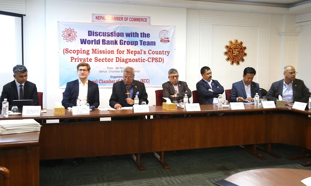 काठमाडौं । नेपाल चेम्बर अफ कमर्स र विश्व बैंक समूहबीच नेपालको निजी क्षेत्रको अवस्था, लगानीका अवसर र बर्तमान चुनौतीबारे उच्चस्तरीय छलफल भएको छ ।