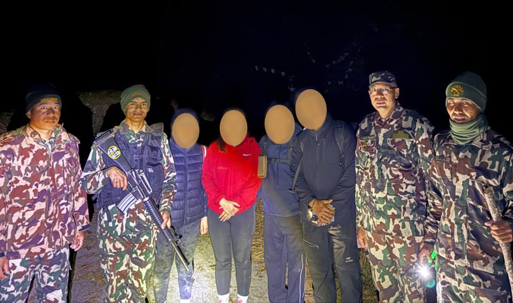 सोमबार शिवपुरी नागार्जुन राष्ट्रिय निकुञ्ज भ्रमणको क्रममा हराएका ४ जनालाई निकुञ्ज सुरक्षार्थ तैनाथ चन्दननाथ गणको टोलीले गए राति ९ बजे सकुशल फेला पारी नेपाल प्रहरीलाई बुझाएको जनाएको छ ।