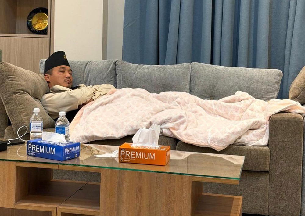 काठमाडौं । गृहमन्त्री सुदन गुरुङ मन्त्रालयको सोफामा सुतेको तस्बीर सामाजिक सञ्जालमा भाइरल भएको छ ।