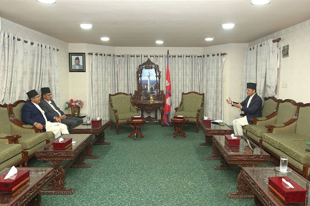 काठमाडौं । सभामुख डीपी अर्यालले पूर्व सभामुखहरू देवराज घिमिरे र अग्निप्रसाद सापकोटासँग भेटवार्ता गरेका छन् ।