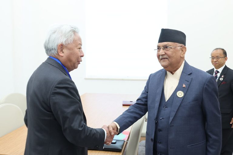 प्रधानमन्त्री ओली र एसियन पूर्वाधार लगानी बैकका अध्यक्ष लिम्बुननबीच भेटवार्ता