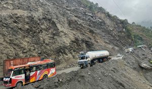 तुईन खोला पुल नजिकै पहिरो, सडक अवरुद्ध